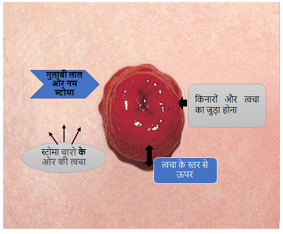 - स्टोमा त्वचा के स्तर से ऊपर होना चाहिए।